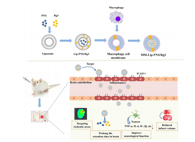 巨噬细胞膜包裹负载人参皂苷 Rg3和三七总皂苷PNS的脂质体