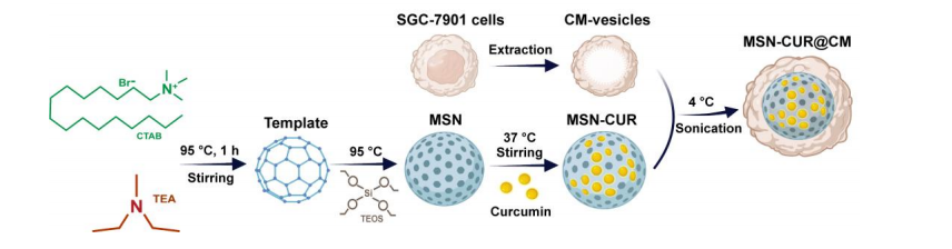 癌细胞膜包裹的介孔二氧化硅纳米颗粒(MSNs)负载姜黄素