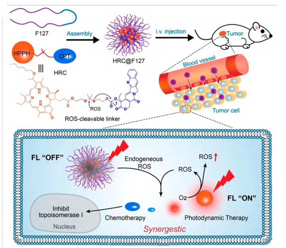 普朗尼克F127聚合物纳米颗粒包载通过ROS响应硫缩酮键连接的光敏剂HPPH和喜树碱 Pluronic F127@CPT-TK-HPPH