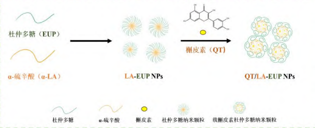 具有GHS谷胱甘肽响应的a-疏辛酸(α-LA)自组装杜仲多糖纳米粒(LA-EUP NPS)包载天然黄酮槲皮素