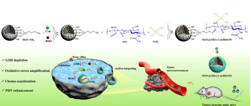 氧化透明质酸(OHA)修饰负载丁硫氨酸亚砜亚胺(BSO),顺铂(Pt)和二氢卟酚e6(Ce6)的介孔硅纳米颗粒(MSN)