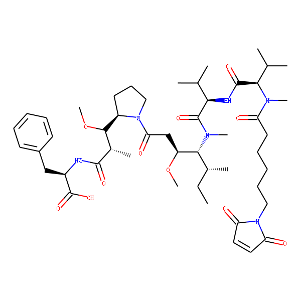Depatuxizumab mafodotin 的作用机制基于其作为抗体-药物偶联物(ADC)的设计。它由靶向表皮生长因子受体(EGFR)特异性单克隆抗体ABT-806、可裂解的VC连接子和细胞毒性药物单甲基澳瑞他汀F(MMAF)组成。ABT-806抗体靶向EGFR的肿瘤特异性表位,确保药物能够精准地结合并进入肿瘤细胞,而VC连接子在肿瘤细胞内裂解,释放出细胞毒性药物MMAF,抑制微管功能并导致肿瘤细胞死亡。该药物主要用于治疗EGFR扩增的复发性胶质母细胞瘤(GBM)等恶性肿瘤,特别适用于传统治疗无效的难治性肿瘤,具有精准靶向和较少副作用的优势。