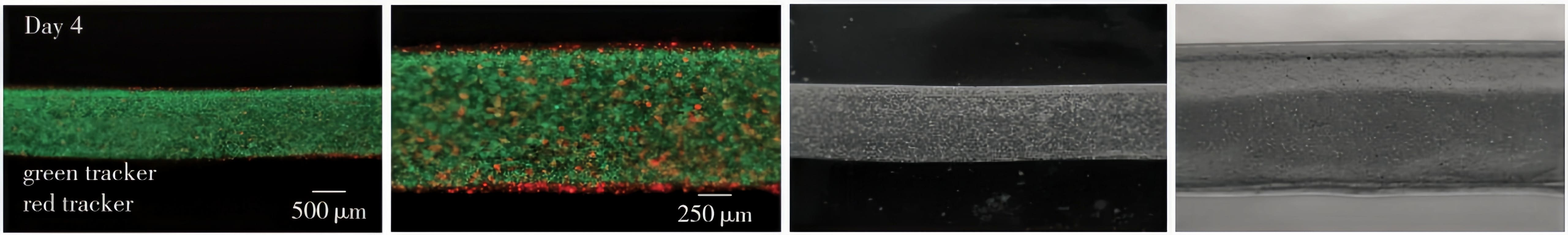 (图4(c))3D生物打印血管的免疫组化染色共聚焦显微镜图像图4 数字调控的微流体生物打印复层管状组织